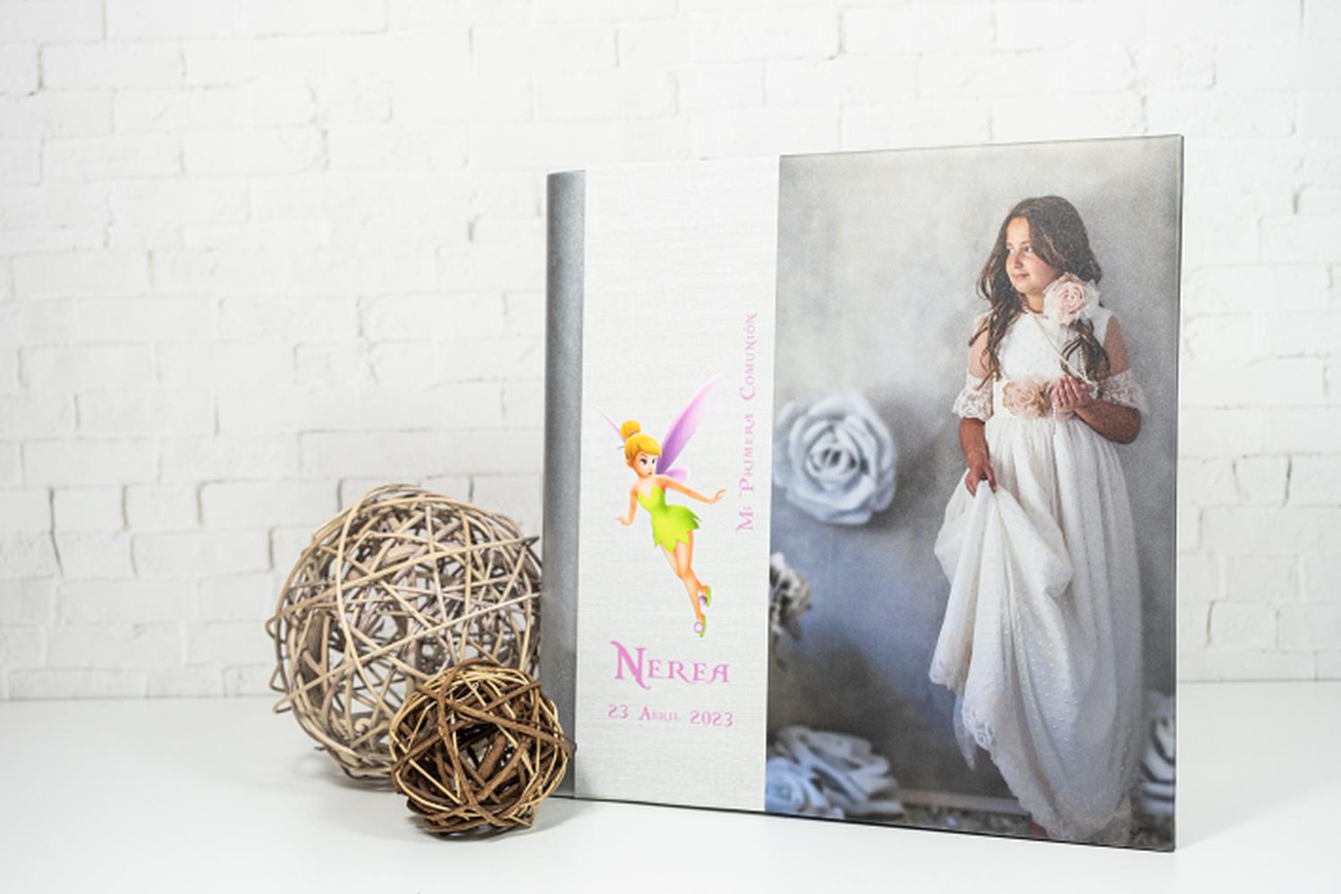 Portada Combi vertical de material y fotografía laminada en el lado derecho con personalización libre mediante impresión UVI en lado izquierdo.