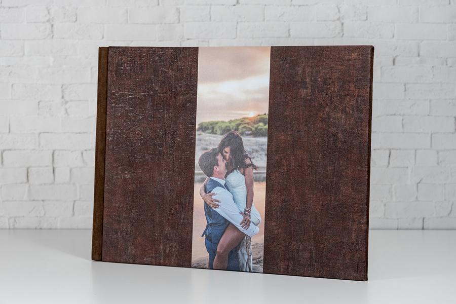 Álbum fabricado en 2 o 3 piezas, combinación de franja fotográfica laminada con material.