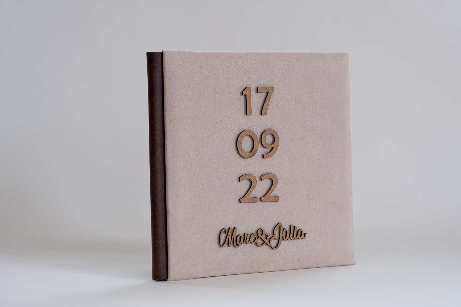 Álbum fabricado en 2 ó 3 piezas, con fechas y nombres cortadas en madera.