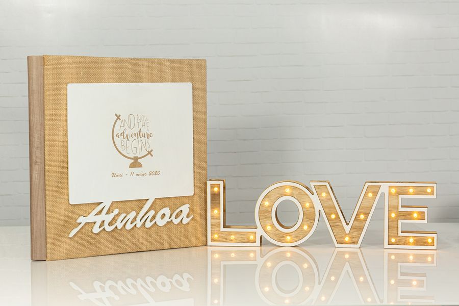 Album 25×25 con 12 hojas, cualquier tapa + caja París / caja madera tapa corredera o bolsa Bilbao